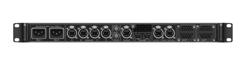 Elle est dotée d'un système Dante redondant et en option du MADI redondant, ce qui garantit une intégration transparente dans votre réseau audio. Des antennes peuvent être ajoutées pour la redondance, l'extension de la zone de couverture ou l'accroissement du spectre.